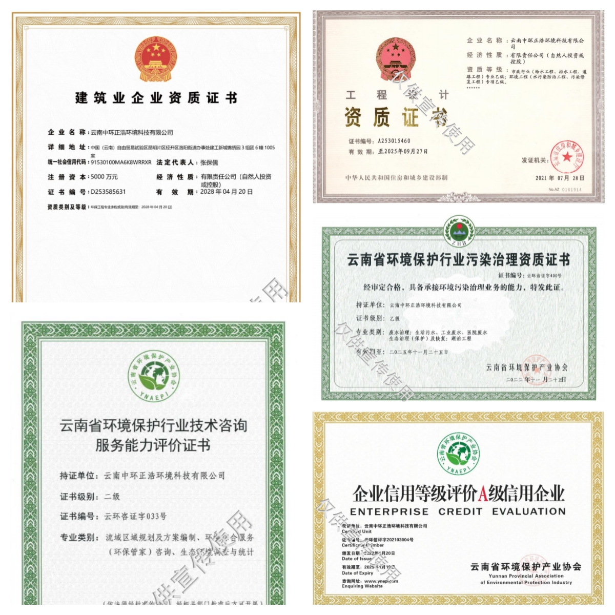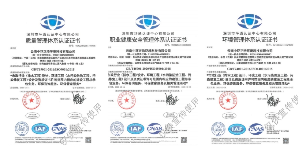 云南中環(huán)正浩環(huán)境科技有限公司成立于2016年12月09日,企業(yè)的經(jīng)營范圍為:許可項目:地質(zhì)災害治理工程施工;地質(zhì)災害治理工程監(jiān)理;地質(zhì)災害治理工程勘查;地質(zhì)災害治理工程設(shè)計;各類工程建設(shè)活動;地質(zhì)災害危險性評估;建設(shè)工程勘察;建設(shè)工程設(shè)計。一般項目:環(huán)保咨詢服務;生態(tài)資源監(jiān)測;環(huán)境保護監(jiān)測;固體廢物治理;地質(zhì)災害治理服務;土壤污染治理與修復服務;土壤環(huán)境污染防治服務;水污染治理;水環(huán)境污染防治服務;大氣污染治理;大氣環(huán)境污染防治服務;生態(tài)恢復及生態(tài)保護服務;技術(shù)服務、技術(shù)開發(fā)、技術(shù)咨詢、技術(shù)交流、技術(shù)轉(zhuǎn)讓、技術(shù)推廣;專業(yè)保潔、清洗、消毒服務;環(huán)境保護專用設(shè)備銷售;環(huán)境監(jiān)測專用儀器儀表銷售;貨物進出口;技術(shù)進出口。持有住建部門頒發(fā)的市政行業(yè)專業(yè)乙級和環(huán)境工程專項乙級工程設(shè)計資質(zhì)證書、國家發(fā)改委備案的工程咨詢單位證書(備案編號 9153010MA6K8WRRXR-20)、環(huán)境保護污染治理資質(zhì)乙級證書、環(huán)保管家資質(zhì)證書、環(huán)境咨詢認證證書等。