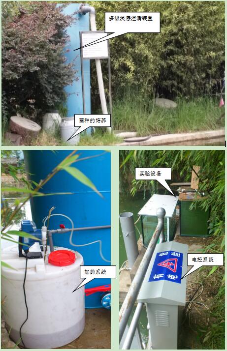 項(xiàng)目采用有效微生物菌技術(shù)結(jié)合循環(huán)凈水工藝對(duì)小型湖泊、池塘、水庫(kù)等污染匯富營(yíng)養(yǎng)化水體進(jìn)行原位、異位結(jié)合修復(fù),首次提出了富營(yíng)養(yǎng)化水體藻菌共生概念,快速建立水體生態(tài)自凈平衡系統(tǒng),實(shí)現(xiàn)對(duì)水體富營(yíng)養(yǎng)化的根本治理。通過(guò)對(duì)天然沸石超微改性后,配合常用凈水劑復(fù)合制得物理型助凝劑(JYX-助凝劑),吸附、脫色、助凝等功能優(yōu)異,可有效吸附水中氮磷。研制出漂移式多功能凈水設(shè)備,集凈化除藻、投菌、充氧、噴泉景觀等功能于一體,具有節(jié)能、降濁、除藻效率高、投資少等優(yōu)點(diǎn)。利用該工藝處理后的水質(zhì)符合地面水環(huán)境質(zhì)量標(biāo)準(zhǔn)中的Ⅲ類水質(zhì)標(biāo)準(zhǔn)。